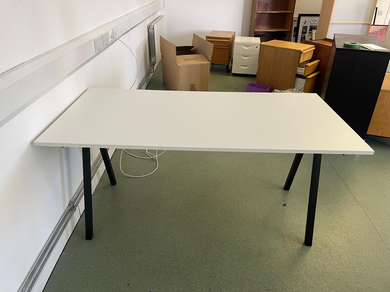 Several large white desks going for free.