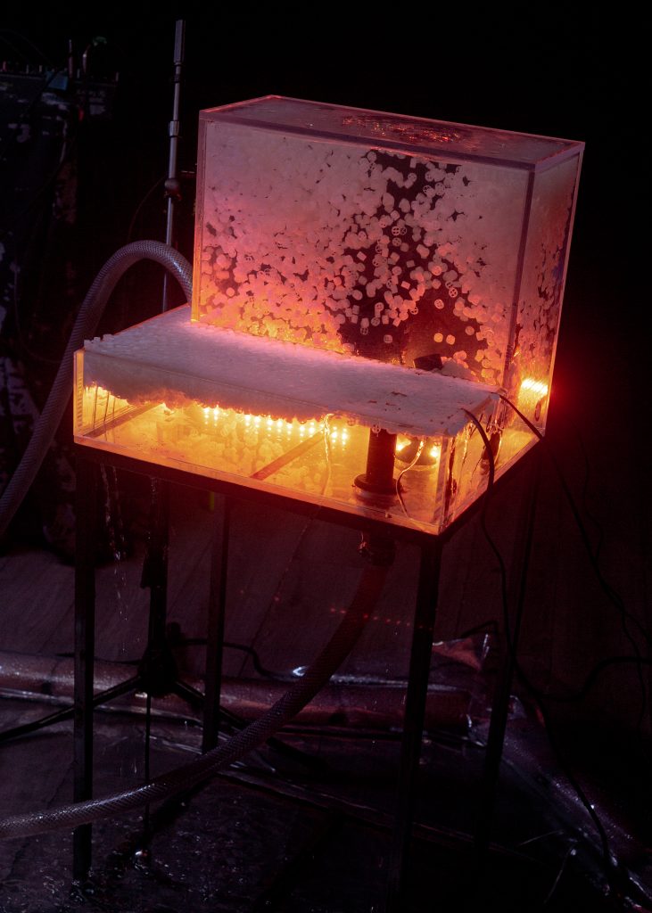 Following the festival, materials left over from production were listed on CAN rather than discarded. One such material was 50kg of ceramic sand, which subsequently entered circulation and was later reused in Plummet, a sound and visual installation by Poole, Matty Rimmer, and Slyn at Exit, Glasgow.